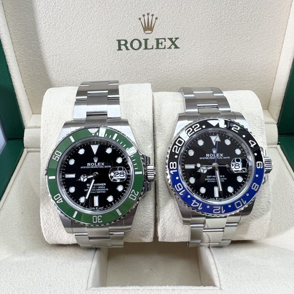 These watches are both unworn 2024 full sets and come complete with the remainder of their 5 year Rolex warranties.