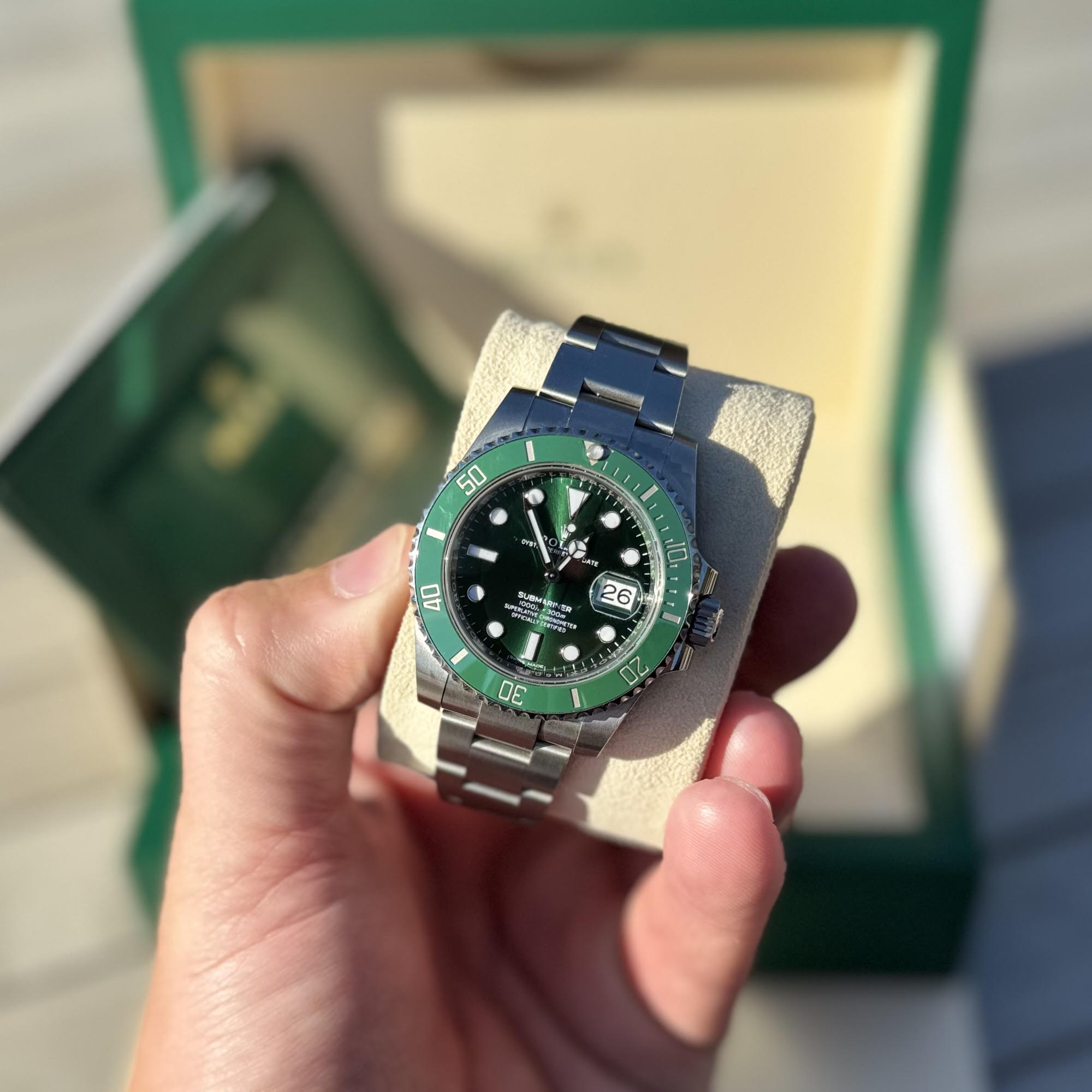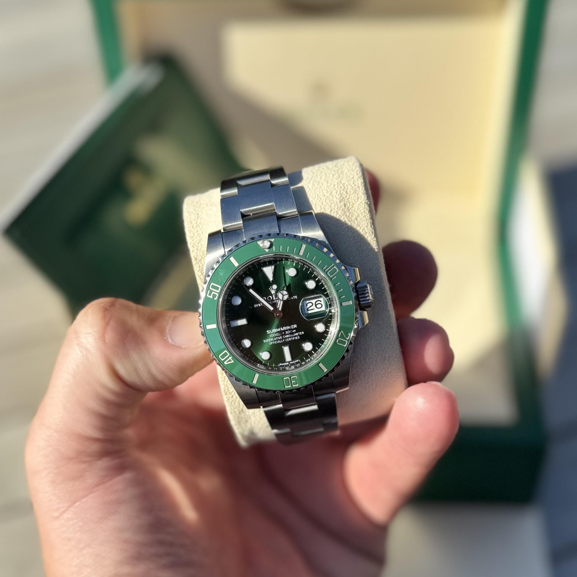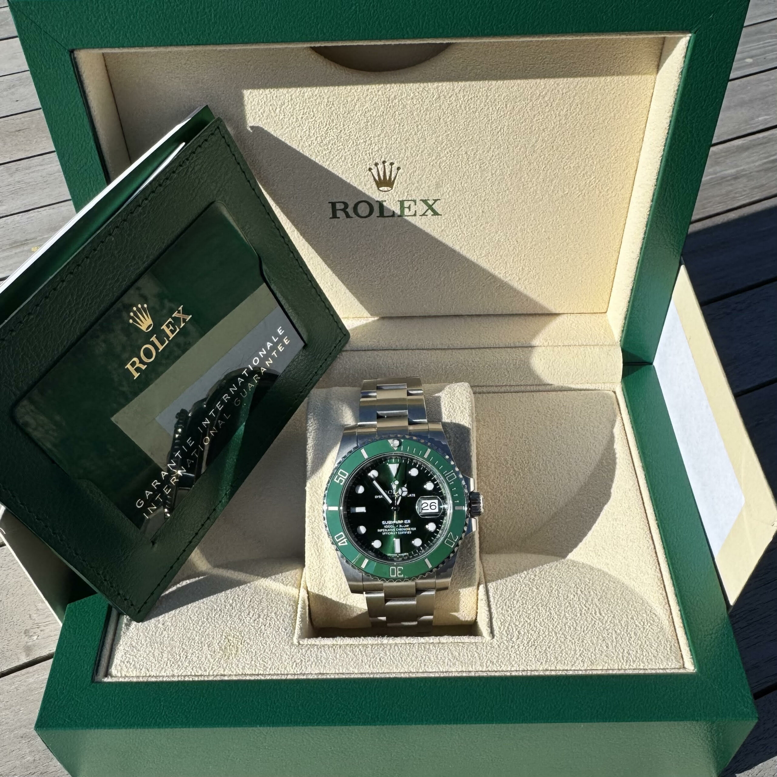 Since being discontinued in 2020, the ‘Hulk’ has steadily risen in value and desirability, but given how rare a 2020 Hulk on the new style card is and the fact that this watch is dated after the model was discontinued this piece now commands a MASSIVE £18,000 market value… that’s IF you can find one!!