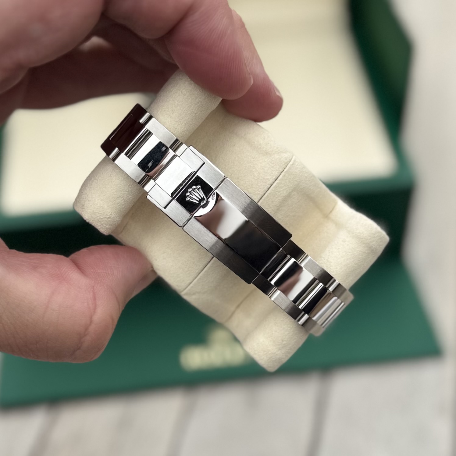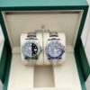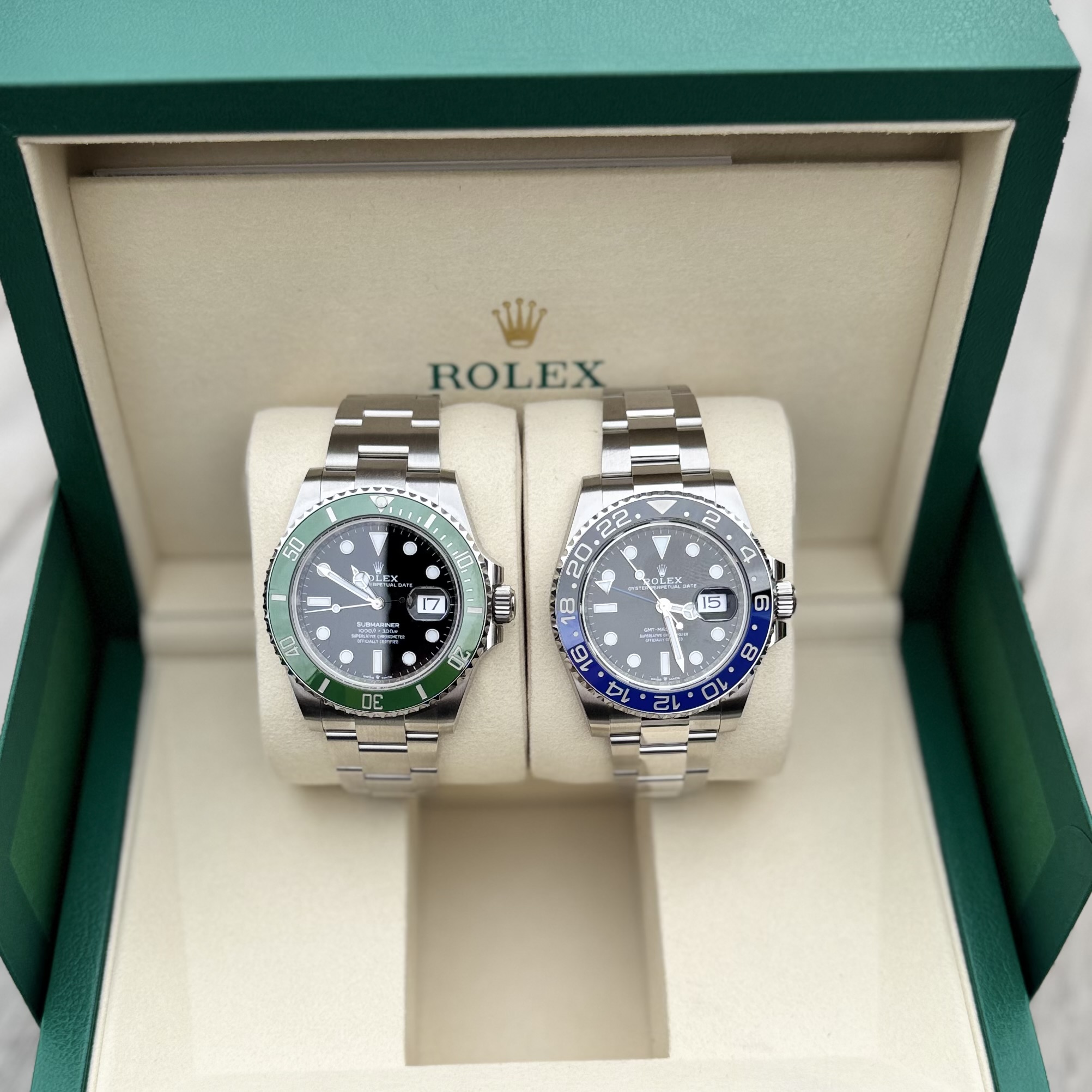 Both of these stunning watches are full sets and come complete with the new style Rolex box, Rolex books, card, wallet, green tag and remainder of their 5 year Rolex warranties.